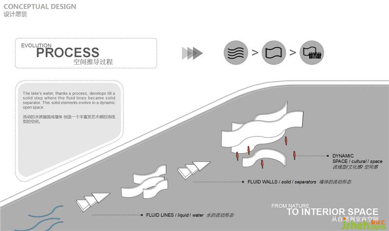 依托于自然而來,設計取“自然”之勢,河流代表了水的流動性,動態(tài)代表著人類的身影。交融碰撞中,可隱約一瞥江面碧水煙波裊裊的空間畫卷。
