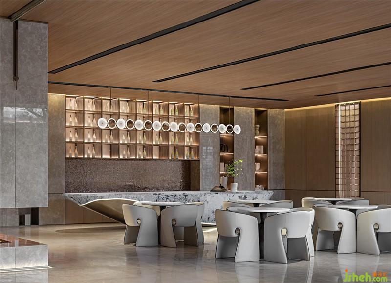 精心安排的藝術(shù)吊燈,彰顯著都市精英階層與潮流人士對(duì)生活品質(zhì)與藝術(shù)品位的高度追求。大理石與亞克力材質(zhì)的碰撞,讓品酒與洽談成另一場(chǎng)浪漫的邂逅,讓空間與使用者更從容有序。