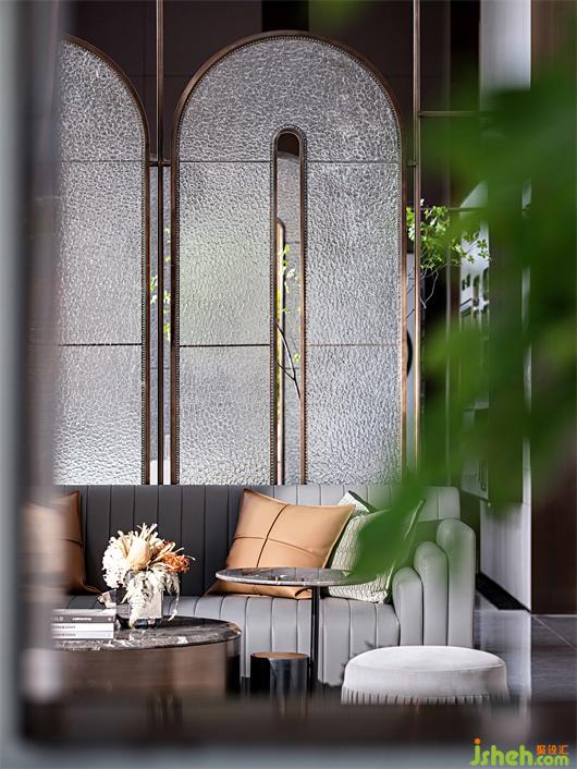 哈爾濱售樓處設計具有東方形態(tài)的玻璃屏風,搭配著幾支綠意,在陽光的映襯下,愜意又唯美。