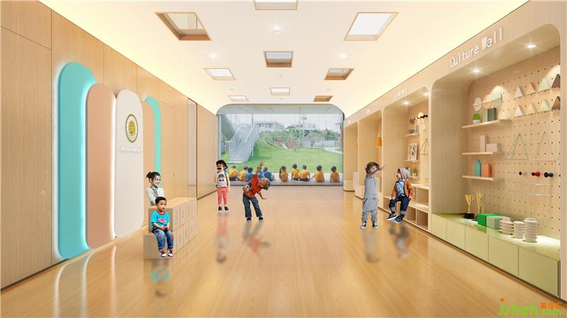 前廳用大量的暖色調(diào),讓整個(gè)空間光線更加明亮柔和;地面鋪設(shè)實(shí)木地板,整個(gè)空間顯得溫暖典雅。幼兒園設(shè)計(jì)師用大大的音符設(shè)置整個(gè)墻面,使整個(gè)空間顯得活潑跳脫。天花采用的是燈盤(pán)和鏡面作為主造型,滿足小孩的好奇心也可以提升整個(gè)空間質(zhì)感。