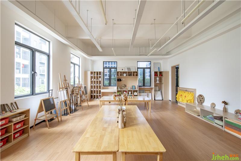 美工區(qū)的設(shè)計(jì)現(xiàn)代簡(jiǎn)約,沒(méi)有太多的繁瑣。環(huán)保的木地板鋪設(shè),讓整個(gè)空間質(zhì)感厚實(shí)而溫潤(rùn),孩童踩在上面會(huì)有一種舒適溫暖的感覺(jué),同時(shí)也具有防滑性,對(duì)孩童的安全起到了一定的保護(hù)。