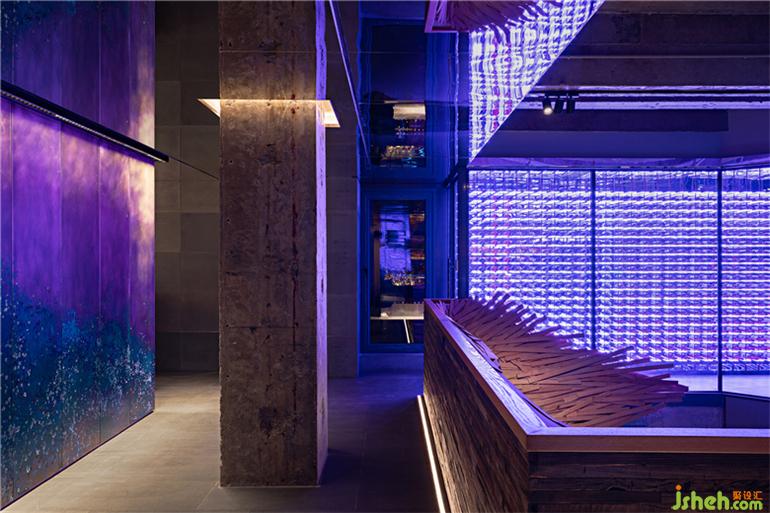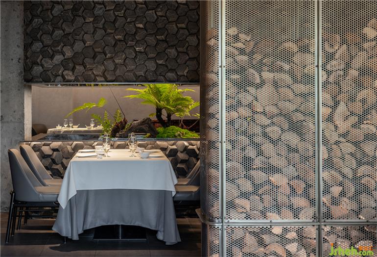 在無限質(zhì)樸,貼近自然的底色上,以藝術(shù)手法、材料、燈光“施金措彩”是讓整個(gè)餐廳空間獨(dú)樹一幟的巧妙手法。