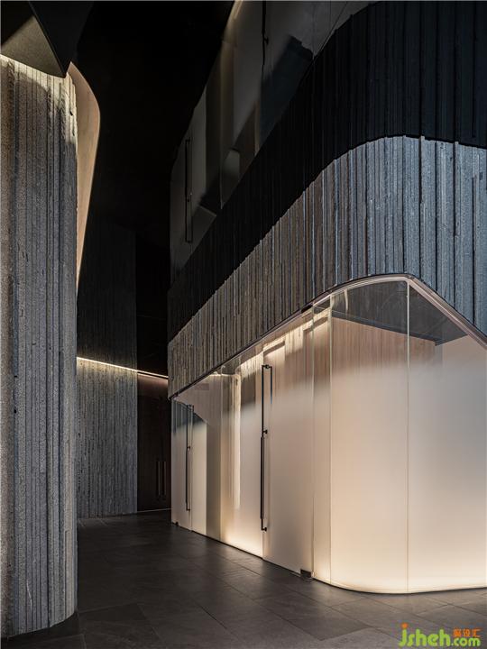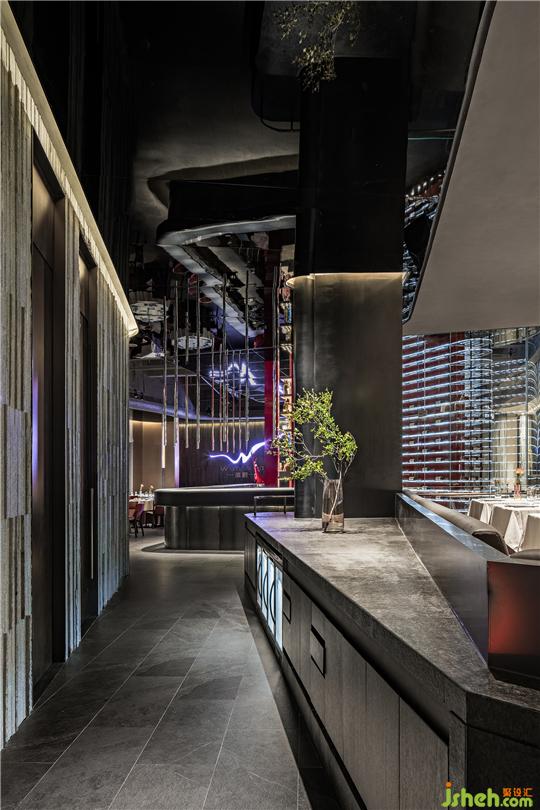 進入空間后,吳為打造餐廳結(jié)合酒吧的新興業(yè)態(tài),以多種方式留住年輕的消費群體,前衛(wèi)絢麗的細節(jié)設(shè)計將食客吸引的同時,粗糲質(zhì)樸的空間則帶來熟悉的日常煙火氣,地道精致的味覺與“提鮮”的戲劇藝術(shù)融入自然成了讓人流連難忘的點睛之筆。
