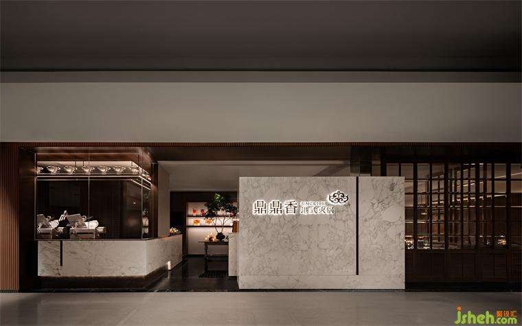 火鍋設(shè)計門頭是餐廳和skp間的物理界面,厚重的白色石材低于天花,這面如影壁或屏風意向的LOGO墻稍稍遮擋了內(nèi)部,同時拉出了空間層次,它統(tǒng)領(lǐng)了內(nèi)部的體驗:在有限空間里,各區(qū)域片段的感官組成印象的疊加,平??臻g因為韻律變化而妙趣橫生。