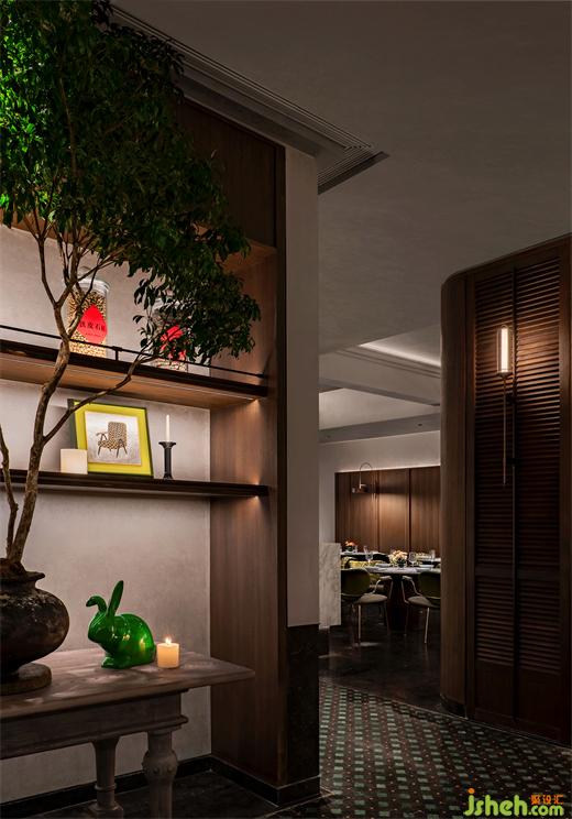 火鍋設(shè)計風格是新空間撬動情緒的密鑰。經(jīng)過變體的木質(zhì)護墻板、百葉窗、花磚、軟包扶手椅、黃銅壁燈......設(shè)計書寫了一幅南洋、東洋與西洋混合的懷舊手卷,港式火鍋的基因只是一個引子,它牽出滄桑巨變的百年歷史中,是永不褪色的亞太文化風情和華人的不朽傳奇。當把令人迷醉的大歷史拓印在現(xiàn)代空間中,其中的力道使設(shè)計師敢于訴諸一種融合的風格表達。