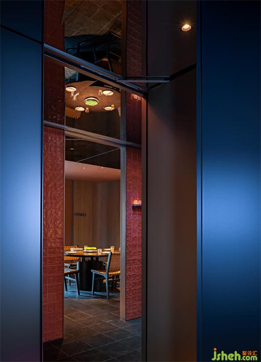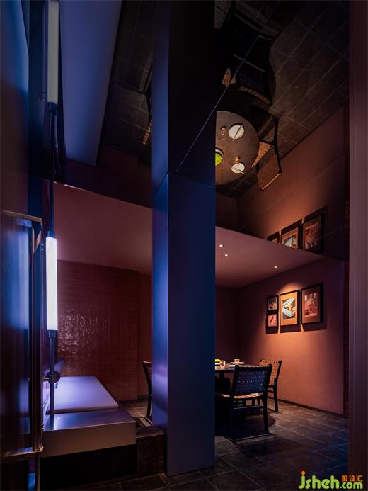 非露天區(qū)劃分為四間VIP包房,從下仰望,走廊屋頂打開(kāi)圓形天窗,讓人聯(lián)想到太空艙飛離地球的瞬間灑下機(jī)械的冷光。