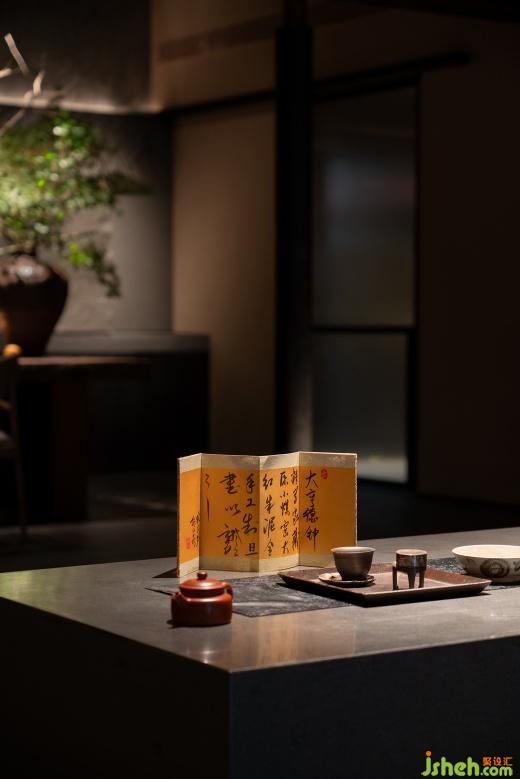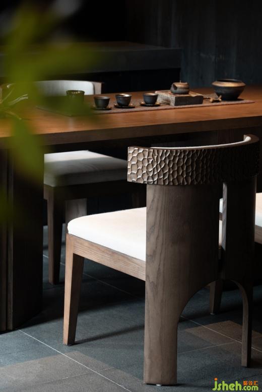 茶室家具延續(xù)空間拙樸,皆簡潔有力摒除細(xì)碎裝點(diǎn),由此形成相對干凈通透的屋子,茶室設(shè)計為味覺搭建一個充裕且不受煩擾的環(huán)境,清幽茶香與環(huán)境結(jié)合一致,方不損茶味。