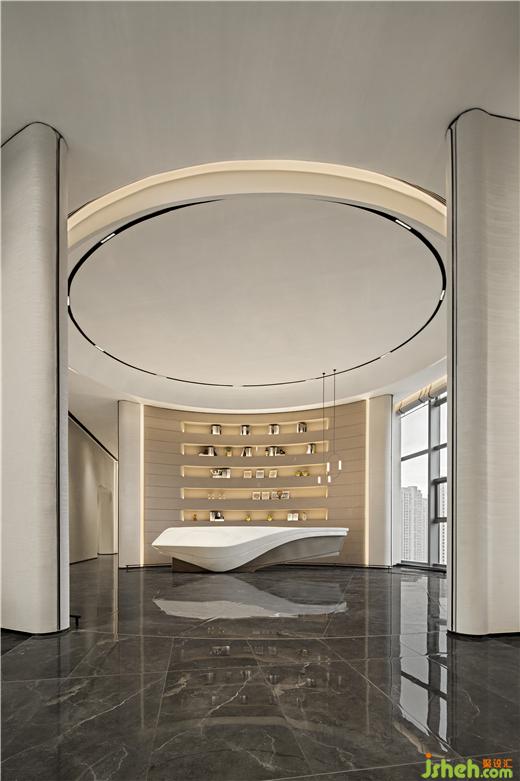 乘著一葉扁舟,飄入“智慧的桃源”盡情遨游。一躍而起的海豚迸發(fā)出向上而生的張力感,福州國貿營銷中心設計延伸出無限的想象空間。
