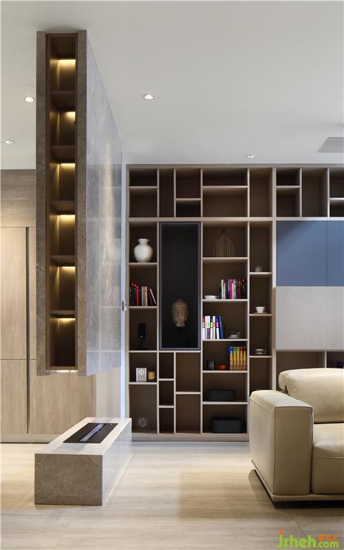 整墻的開放格空間利用率達(dá)到極致時尚實(shí)用整個客廳中的家具線條都很流暢。別墅裝飾