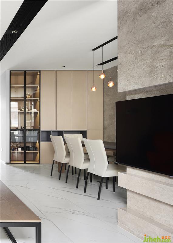 我們用清俊的顏色給主人編織了一場春雨淅瀝般雅致的夢,空間內(nèi)自成一派的韌勁,剛?cè)嶂g相互融合交織,形成溫和細(xì)膩的平衡,皆是這雙璧人對彼此的遷就與包容。別墅裝飾