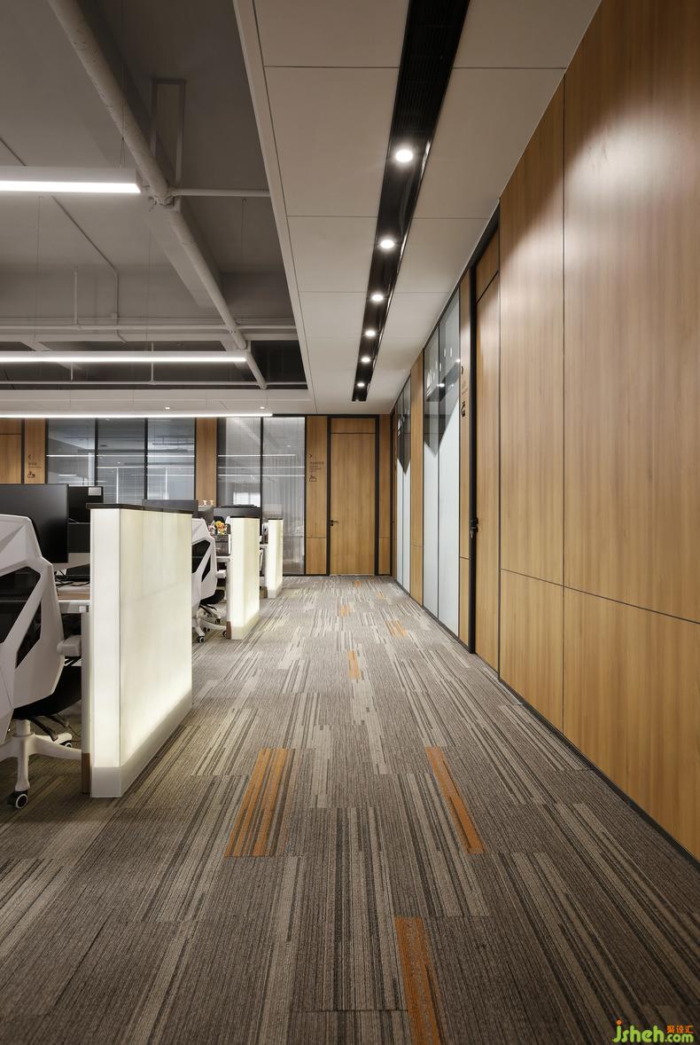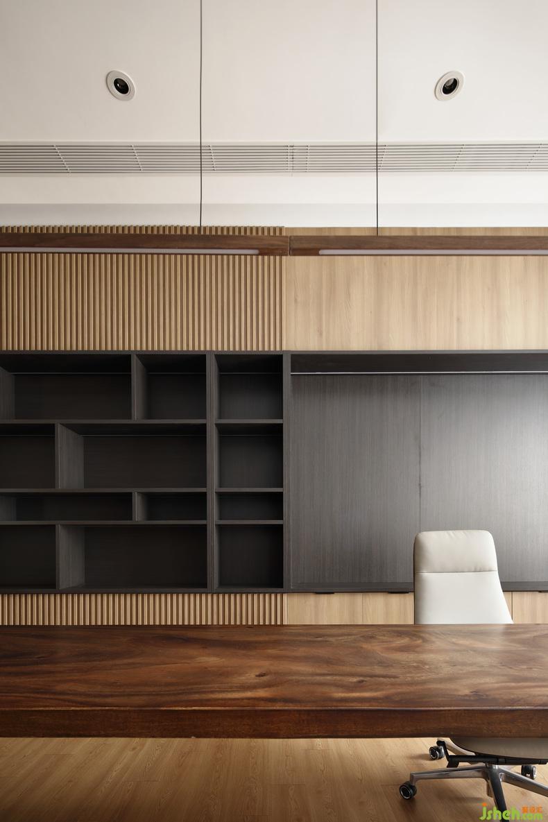 在秩序井然的理性之中注入飽含人文關(guān)懷的感性元素,在基本的物理功能滿足之外創(chuàng)造接近自然的精神需求,現(xiàn)代辦公空間總是在理性與感性、物質(zhì)與精神等多重相對(duì)矛盾中實(shí)現(xiàn)平衡。原木無疑是材料施予空間的魔法,辦公室設(shè)計(jì)棕色具有包容、中和的完美效果,清淺與深暗相互映襯,給人無窮的想象空間