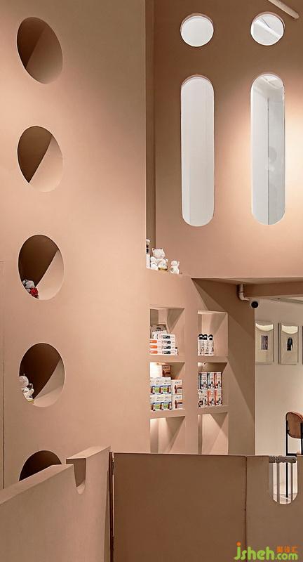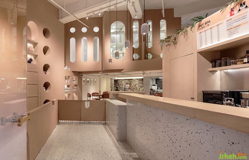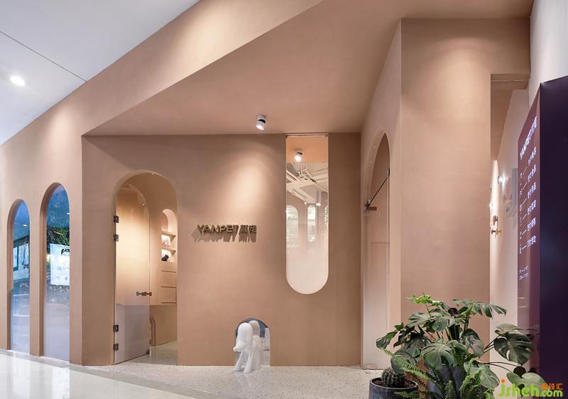為了打破原先呆板的空間,我們將入口旋轉(zhuǎn)了90°,且內(nèi)退一部分空間使入口對應(yīng)著真正的客流主入口,因?yàn)榈赇佄恢锰幱谔旖趾蛢?nèi)部商鋪通道的三向交匯處,如此并解決了原先店鋪如何吸睛的問題,也解決了雙向客流動線的問題(因?yàn)轭亴檭?nèi)部有3條客流主動線,一是主門進(jìn)入的寵物派對活動區(qū),二是次門進(jìn)入通往一樓寵物美容區(qū)的動線,三是次門進(jìn)入通往二樓的寵物寄養(yǎng)區(qū)。)