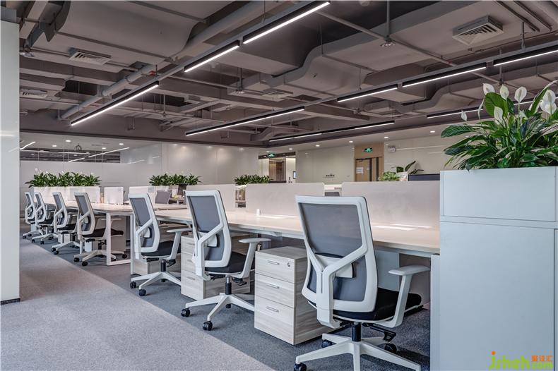 辦公區(qū)域栽有大量綠植學(xué)名白掌,葉片翠綠,花形酷似鶴翹首,辦公室設(shè)計亭亭玉立,潔白無瑕,被稱為“清白之花”更是貼合可思美對“美”的一種追求