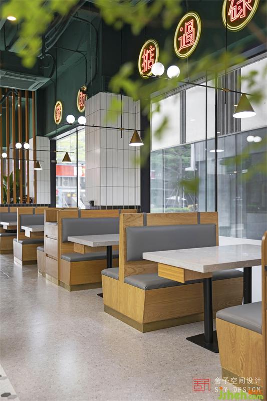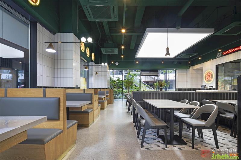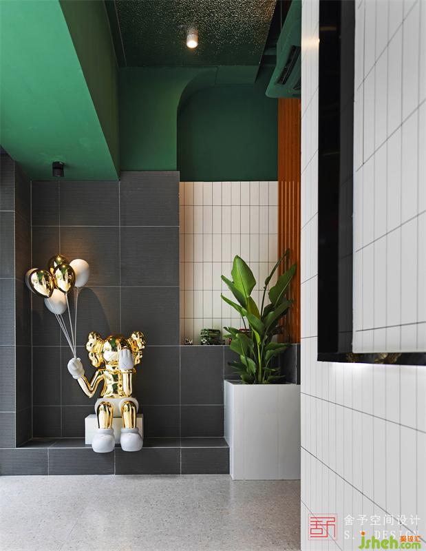 墨綠色調(diào)和方格小白磚更多是人們對傳統(tǒng)港式餐廳一種情懷的延續(xù),快而簡潔的結(jié)構(gòu)造型凸顯時尚都市感,前廳的KAWS潮流雕像也同樣迎合了年輕人們「打卡」的需求。