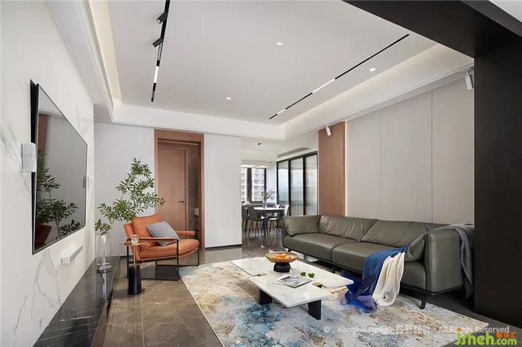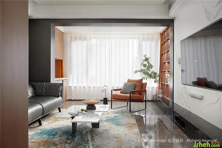 客廳高級(jí)灰用色顯沉穩(wěn)平靜,適宜的活動(dòng)空間給全職在家的女主人,提供充足的空間可以陪伴家人,靠窗的白紗與棕色收納柜,給空間增添不少柔情,我們了解到男主人公是一位優(yōu)秀的航海員,通過提取相關(guān)元素,將大海的韻味運(yùn)用到地毯與擺件中,整個(gè)空間透著祥和、平穩(wěn)、生趣