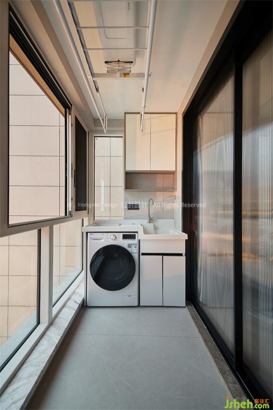 生活陽臺兩側分設洗衣區(qū)和家政收納區(qū)