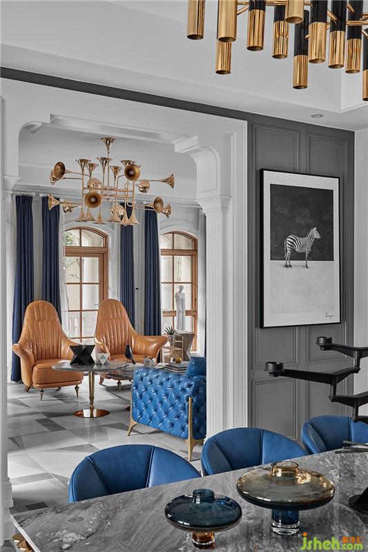 設計者認為良善的設計以人性關懷為基礎,潛移默化地改變著我們日常生活與生活方式,追尋超然意趣,暢快淋漓地,愉悅我們的感官,也愉悅我們的心情,通過審美的超越性救渡糾纏于世俗利害關系中的心靈,提升我們的品味。很多時候,需要引導的是一種生活方式和態(tài)度,而不是局限于某種風格…本案設計正是恰到好處的將這一理念體現(xiàn)的淋漓盡致。別墅坐落在素有東方威尼斯之稱的江南古城紹興,建筑一共四層(包括閣樓)客廳、餐廳、廚房等公共活動區(qū)設于一層,會客區(qū)娛樂區(qū)工作區(qū)在地下層,二層設三間臥室,三層即為主臥套房衣帽間,附帶中導臺。700平方米的居住空間功能設置齊備,為了呈現(xiàn)更為年輕化的配置,使其生活方式和形態(tài)也都更趨向于現(xiàn)代感,空間感受上格外注重通透、自然、舒適、方便。為此,一層將客餐廳、西廚房打通,融為一體,只是通過對稱的門洞作為空間分割的界定。地下室活動空間,定位為輕工業(yè)風格,開放式書房與會客區(qū)吧臺健身區(qū)融為一體,形成一個更歡樂的娛樂空間,而相對獨立又有關聯(lián)的影音室增加了一定的私密性和保證享受影音過程的品質。