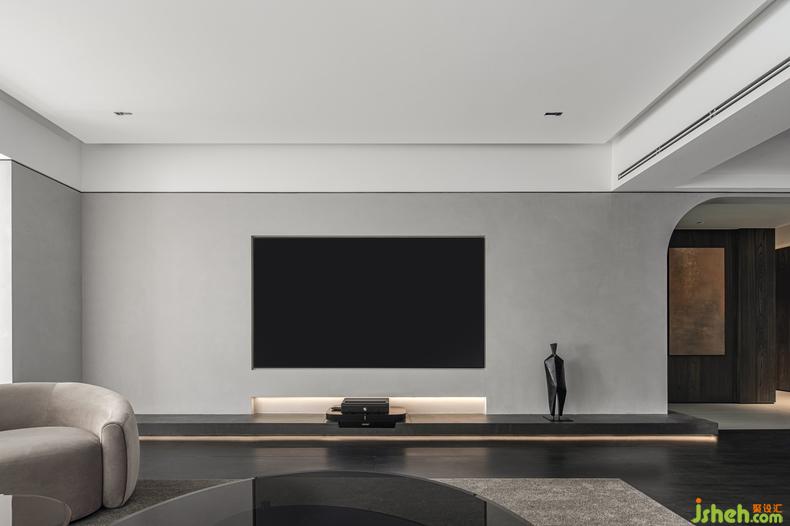 電視背景聯(lián)合玄關(guān)以及用餐區(qū)的一個(gè)大塊面
