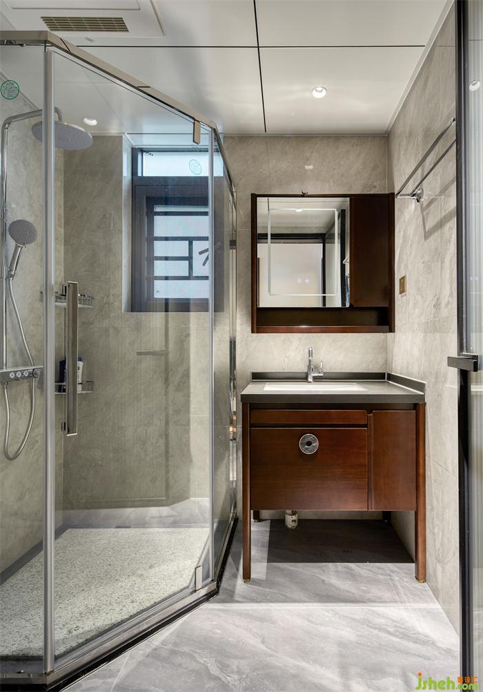 新化別墅裝飾設(shè)計師以利用空間,將開放式的廚房餐廳和客廳在視覺上面融為了一體,彰顯新中式有時尚之風(fēng)又不失高雅古韻之感。