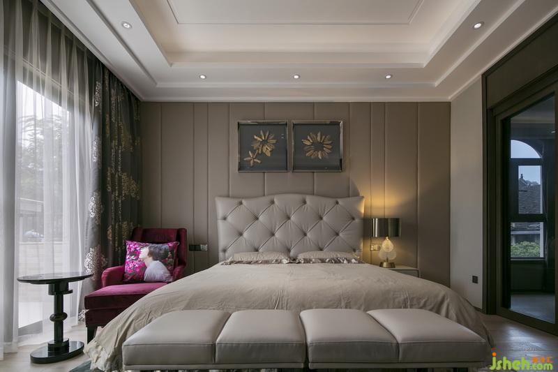 臥室沒(méi)有選用浮夸的標(biāo)簽,寢居、睡眠質(zhì)量是設(shè)計(jì)的首選。設(shè)計(jì)公司去掉更多的色彩關(guān)聯(lián),選用更多的靜態(tài)元素,在不同時(shí)間段,進(jìn)入臥室空間都能感受到休閑、放松的狀態(tài)。其次,臥室空間輔助功能與衣帽間、衛(wèi)生間等關(guān)聯(lián),既能劃分視覺(jué)動(dòng)線,也大大提升空間的舒適度。