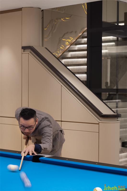 沿藝術(shù)步梯向下,進(jìn)入到以?shī)蕵?lè)休閑為主的負(fù)一層空間。