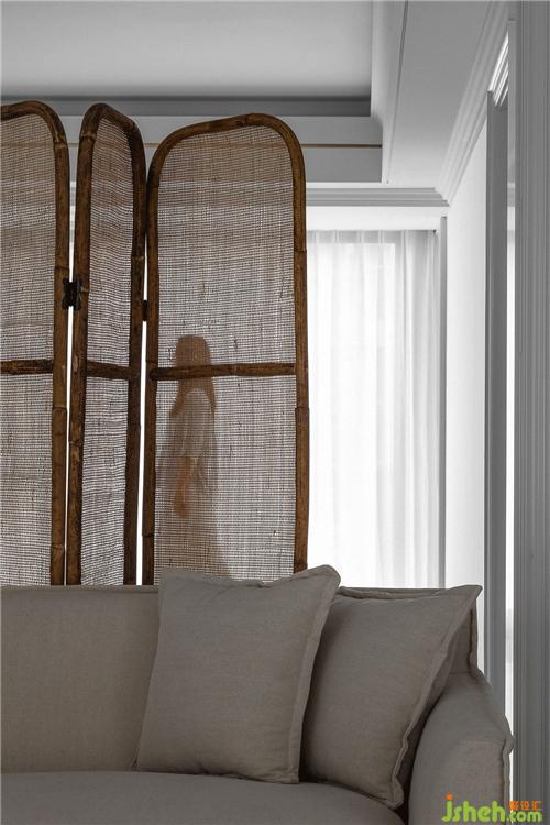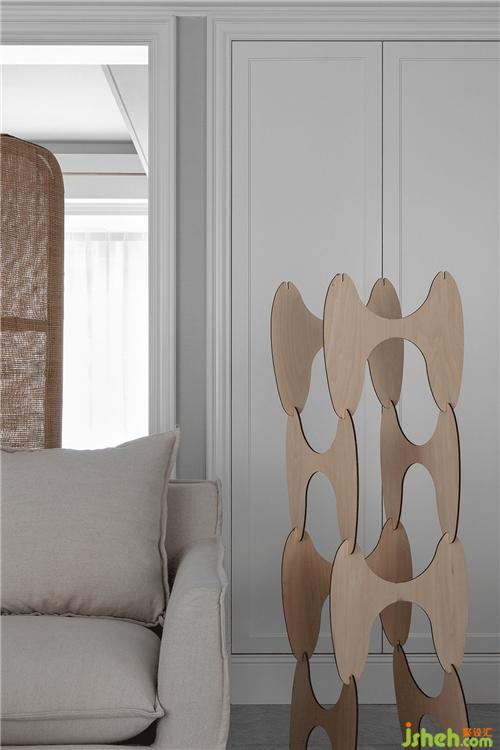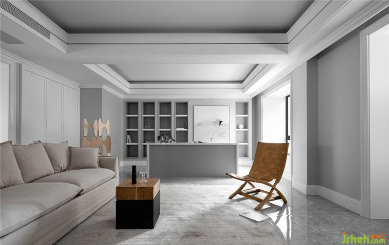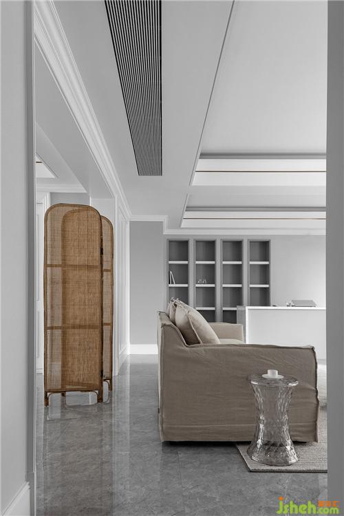 我們在灰白淡雅的空間中隱入細(xì)節(jié),金屬線條的嵌縫,有力地勾勒出吊頂?shù)膶哟?,同時也削弱了低梁位帶來的壓迫感。裝修設(shè)計在客廳空間我們置入一組收納柜,讓公共區(qū)域?qū)崿F(xiàn)視覺穿透性的同時也能保證屋主有足夠整理和歸置收納的空間。