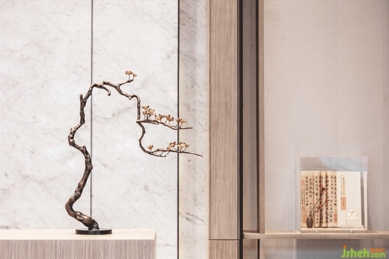 設(shè)計(jì)開始,為在軟裝設(shè)計(jì)上強(qiáng)化“書千尺”文化主題,在現(xiàn)代設(shè)計(jì)手法背景下,設(shè)計(jì)師保留了空間的中式韻味,并以“書”的不同藝術(shù)表現(xiàn)形式為延展,作為整個(gè)項(xiàng)目的藝術(shù)品運(yùn)用,來貫穿每個(gè)空間的動(dòng)線,打造視覺記憶點(diǎn)。