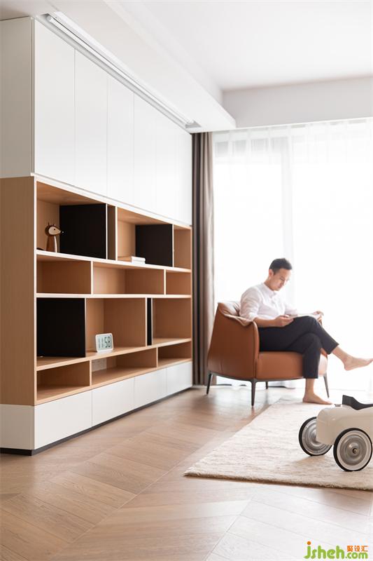 獨立體塊中鏤空的部分作為開放常用的收納區(qū)