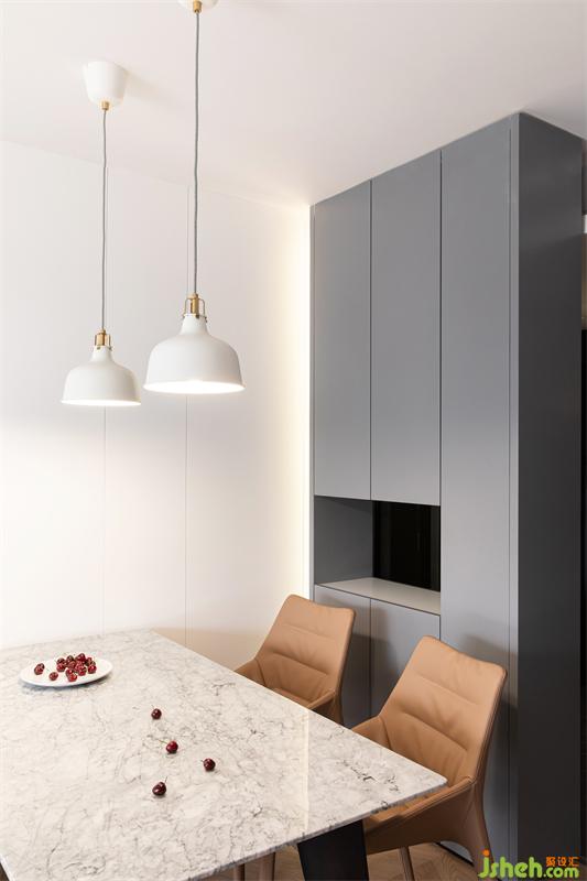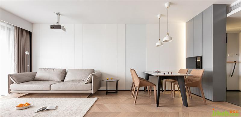 客餐廳背景白色烤漆板錯落有致地鋪排