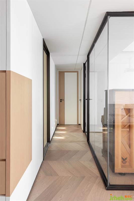 木地板采用魚骨拼方式鋪滿全屋