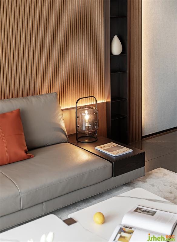 Extend the TV background wall to the entire facade to unify the space as a whole. At the same time, it combines functionality and uses cutting and embedding techniques to do asymmetric modeling, breaking the traditional symmetrical and rigid background wall practice.