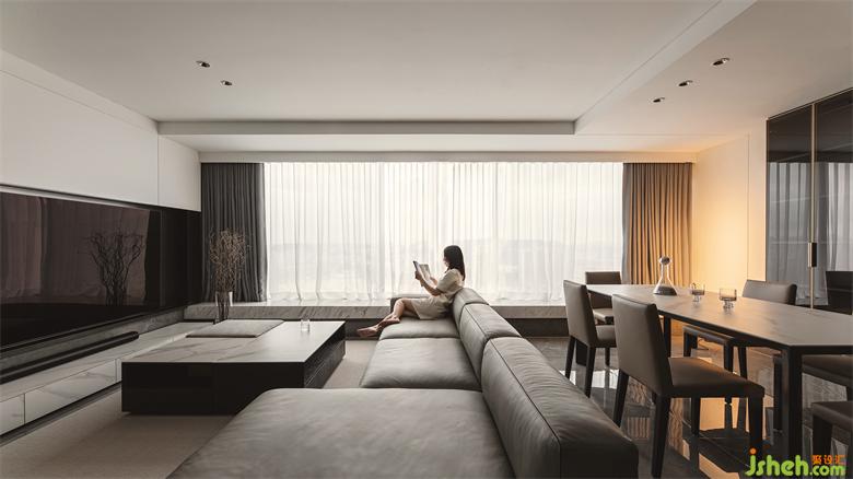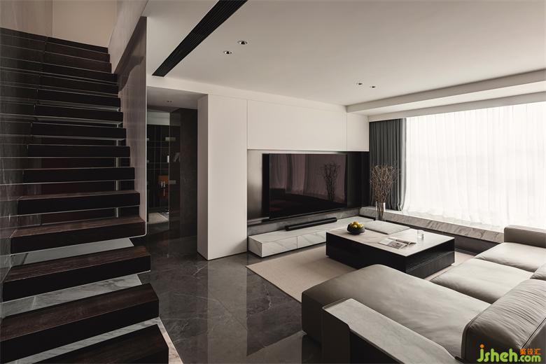 本案是位于惠州江北中心繁華區(qū)的頂樓復(fù)式住宅。以黑白灰為主基調(diào),局部搭配暗紅色,整體呈現(xiàn)當(dāng)代時尚的高級格調(diào)。家裝設(shè)計建筑大面積的橫向開窗,將室外光線與風(fēng)景引入室內(nèi),擁有優(yōu)越的先天條件,頂層絕佳的江景成為了室內(nèi)最好的“立面”。