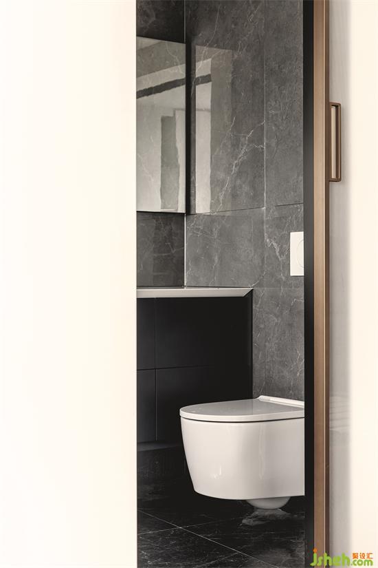 二樓客房衛(wèi)生間壁掛馬桶利用管井位,水箱完全嵌入墻體,保證墻面平整性的同時(shí)視覺效果更為干凈高級(jí)。