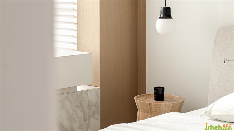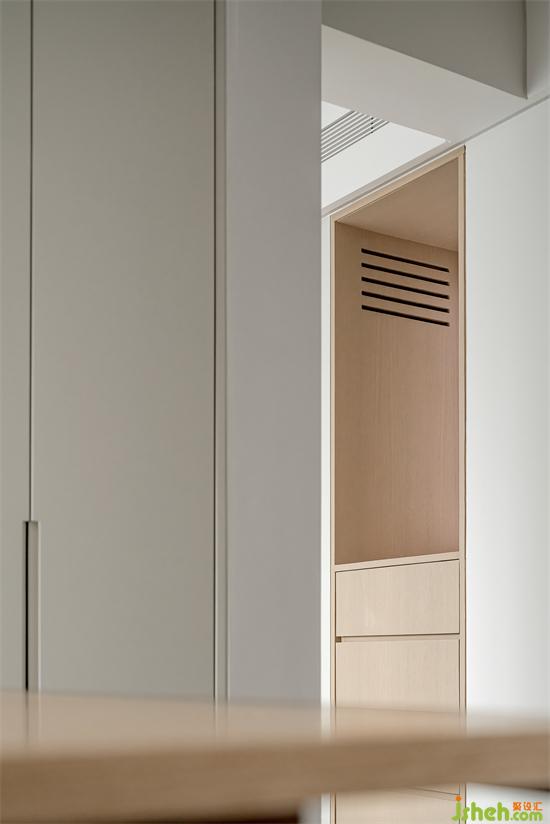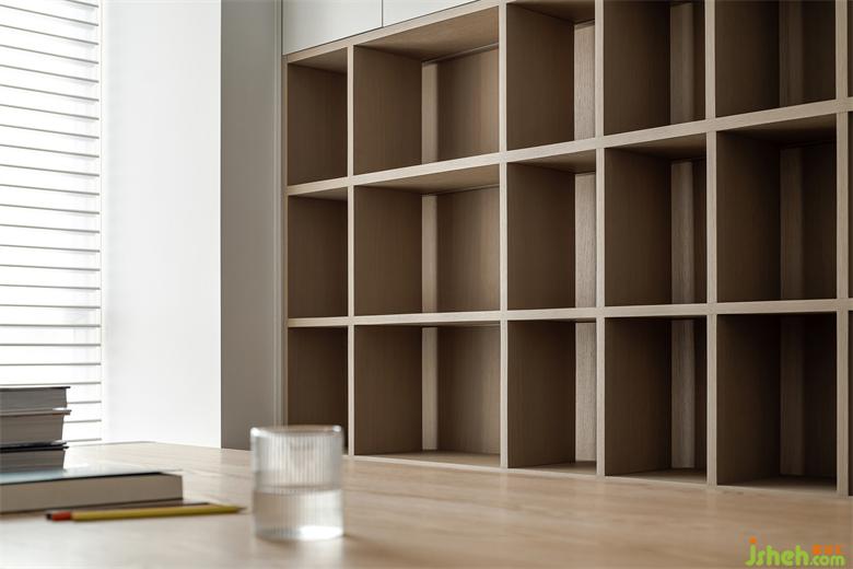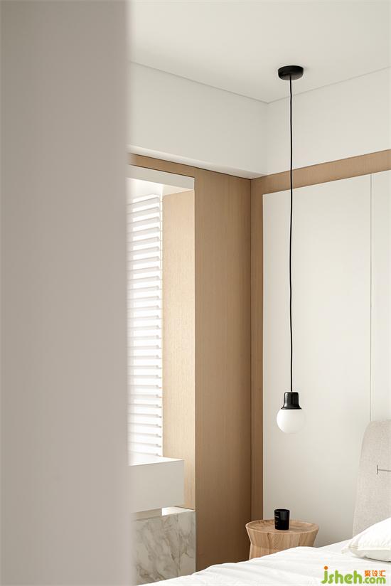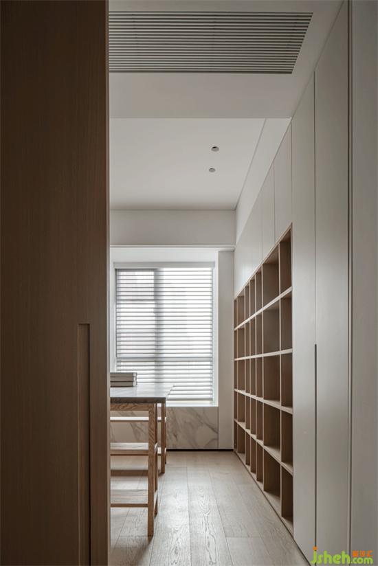 書房與主臥之間用移門分隔,不占用內(nèi)外空間。業(yè)主對隔音沒有要求,又考慮空調(diào)的節(jié)能性,此處移門是最佳選擇。