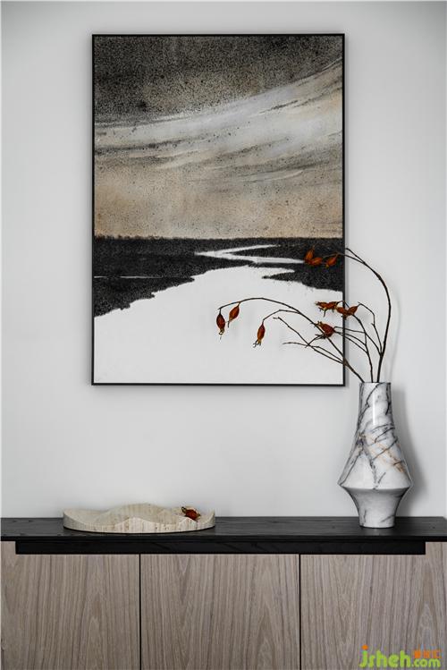 藝術(shù)品則是挑亮整個室內(nèi)空間的關(guān)鍵。設(shè)計(jì)師特意選擇了富于東方精神的抽象作品,沒有具象畫面的闡釋,抽象的圖畫反而營造出更大的想象空間,一個桃花源或許正是在這個空間里誕生了。而這種藝術(shù)性也蔓延到了空間中的花藝設(shè)計(jì)和香氛氣息中。其中花藝師用植物當(dāng)作詞匯,在空間里講故事。而室內(nèi)選用的香薰都和調(diào)香師的旅行記憶相連通,美妙的氣息帶人徐徐進(jìn)入一個溫暖的夢境——在那里,時間不老、情感常新。