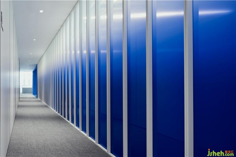 走廊以漸變玻璃作為隔斷,保證透光性的同時遮隱了走廊區(qū)域的活動,避免因為來回走動對工作區(qū)域造成的干擾。