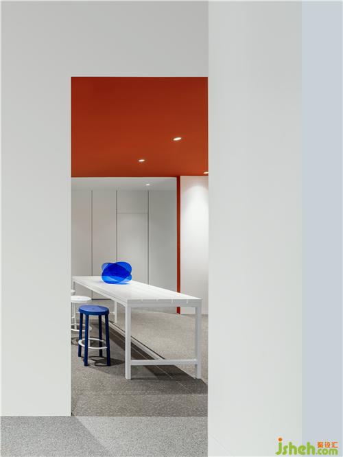設(shè)計延續(xù)了活力的紅色與冷靜的藍(lán)色色塊,以色彩渲染間接影響員工的工作情緒與場景需求,在這樣的空間中人與空間的狀態(tài)是靈活的,多變的。設(shè)計認(rèn)為只有真正地將空間與人的需求結(jié)合起來,改進(jìn)或重新配置辦公空間, 才能滿足員工對工作環(huán)境不斷轉(zhuǎn)變的需求,進(jìn)一步提升企業(yè)的創(chuàng)新力和抗逆力。