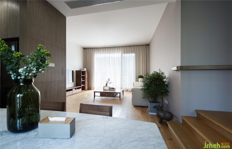 整體簡約的空間上沒有太多的裝飾造型,大面積的木飾面與石材質(zhì)的節(jié)奏控制是設(shè)計考慮的重點。