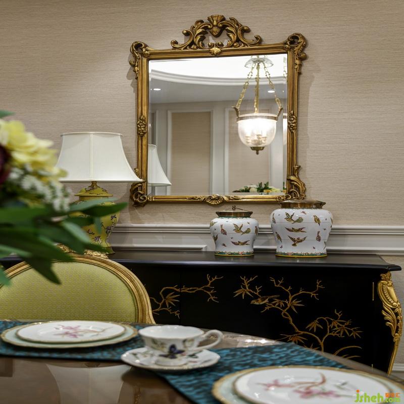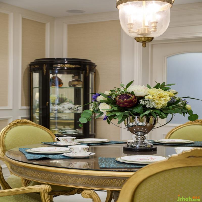 餐廳與客廳統(tǒng)一氛圍,延續(xù)美式的風(fēng)格,室內(nèi)設(shè)計(jì)師利用了簡約的手法和材質(zhì)還原古典氣質(zhì),搭配上造型別致的吊燈,營造出美式的舒適與溫馨。