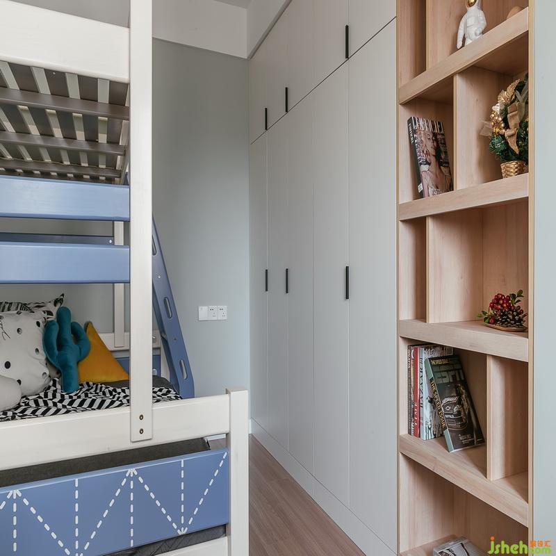 兒童房室內(nèi)設(shè)計師都設(shè)置了整排的衣柜,最大化的利用空間,有充分空間收納孩子的衣物。