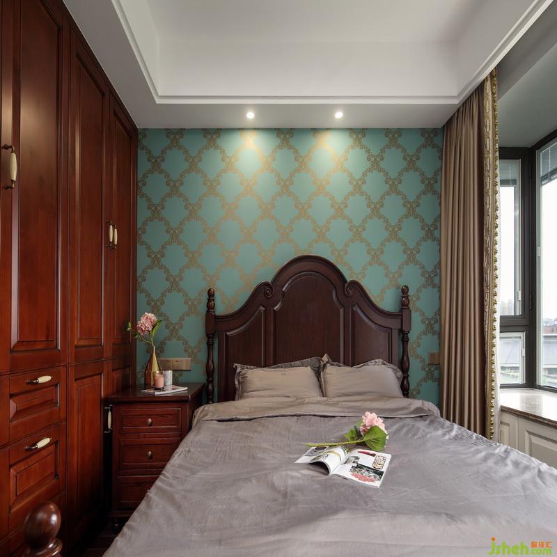 邁入主臥,仿佛走進(jìn)了一個(gè)巨大的珠寶盒,極具奢華質(zhì)感。鑄銅拉手和紅木家具的搭配低調(diào)而華麗,毛莨葉花紋裝點(diǎn)的孔雀綠墻紙仿佛是奧林匹斯山上擇取的靈感,飄窗一側(cè)的窗簾猶如華蓋一般搖曳飄逸,室內(nèi)設(shè)計(jì)師使金色花樽與整體裝飾協(xié)調(diào)一致,是房間中的點(diǎn)睛之筆。