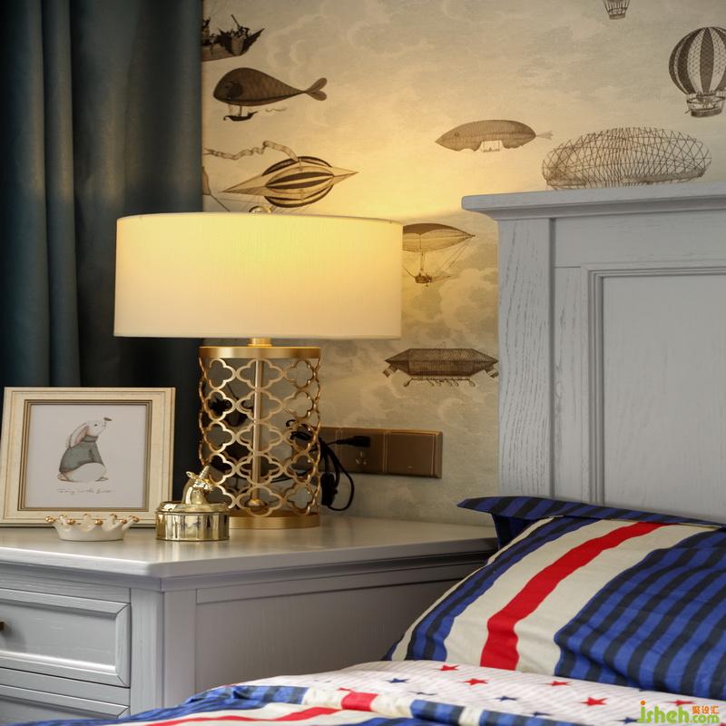 兒童房的設計簡約卻不失童真,滿布天空的熱氣球激發(fā)著小朋友無限的想象熱情,室內(nèi)設計師精心挑選的深藍色床品是溫馨的甜夢海洋。拉上三色漸變窗簾,便是父母在舒服的窩在床上給小家伙講睡覺前故事的美好夜晚。