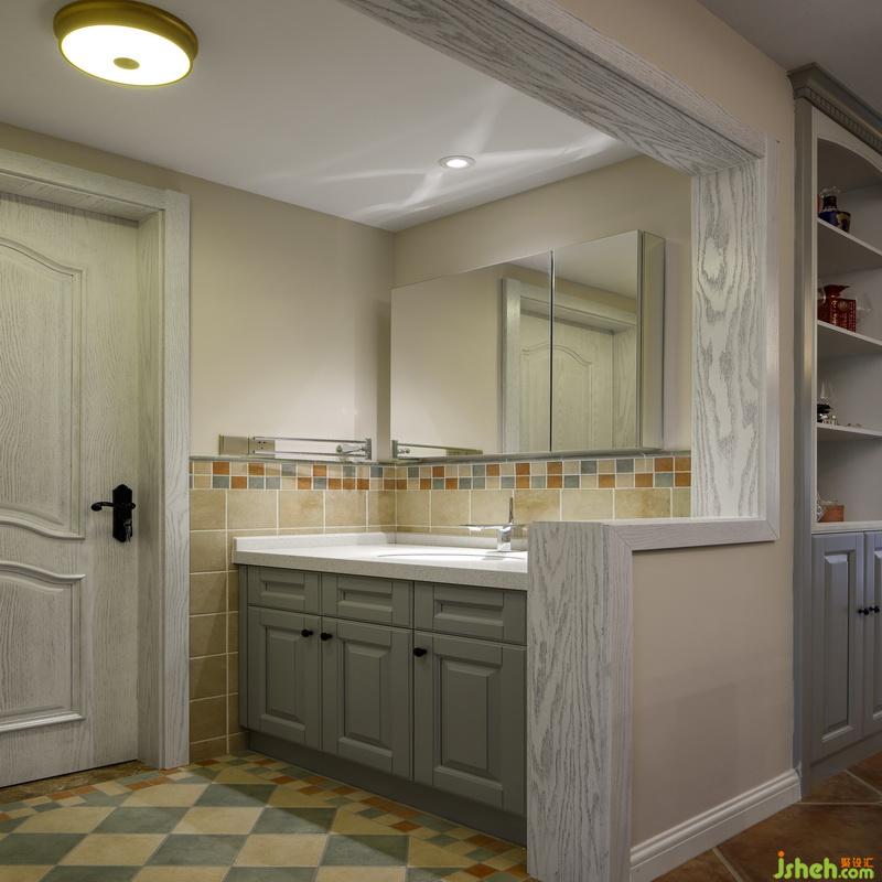 廚房和浴室延續(xù)統(tǒng)一的地中海風格,一橘一藍,讓主人在不同空間的隨意切換中感受家的律動。合理的空間布局,明快的采光設計,以一以貫之的幾何力量,提煉出主人干練的精睿生活方式。