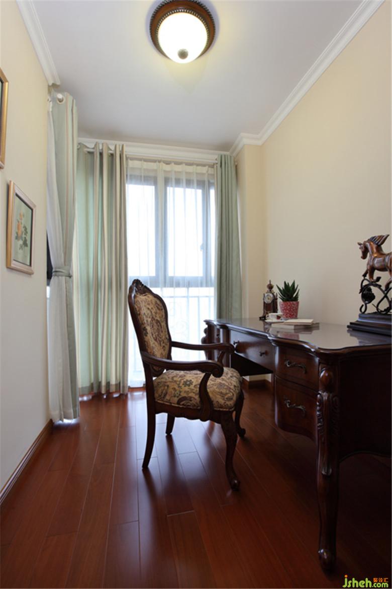 主臥室主要是在床頭背景鋪貼暗紋墻紙?zhí)嵘臻g美感,室內(nèi)設(shè)計(jì)師將露臺(tái)改成書房,這是男主人的私有空間,隔斷出來(lái)背面定制書柜,外墻掛上藝術(shù)裝飾畫,提升藝術(shù)空間,窗臺(tái)上飄逸的白色仿佛一首美妙的歌謠輕輕的歌頌著他們以后幸福美好的生活。