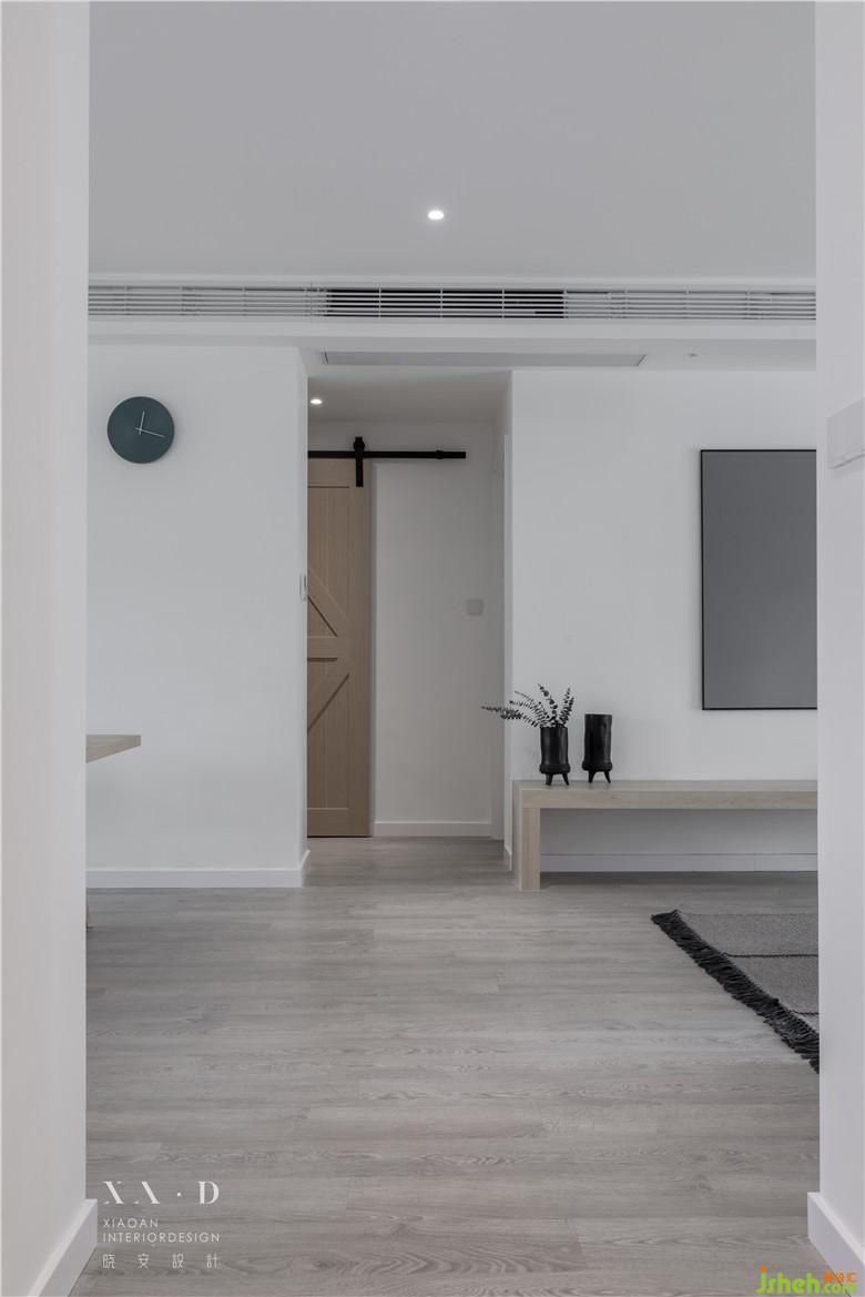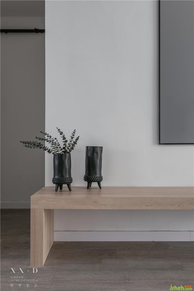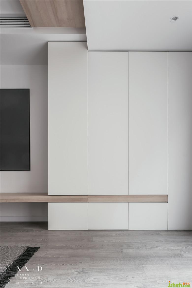 空間滿足儲物功能后,一縷木色從白色中退去。燈光營造了些許飄浮感,室內(nèi)設(shè)計師沒有采用硬質(zhì)拉手而是選擇相對柔軟的皮拉手,綿羊座凳的選擇都在表達業(yè)主內(nèi)心的柔軟。