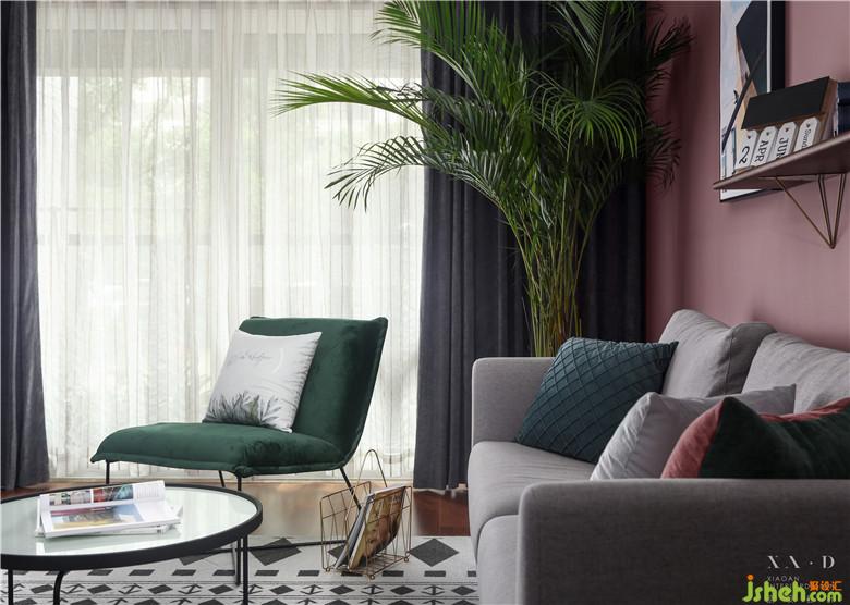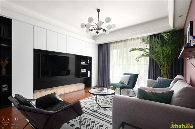 業(yè)主于日用必需的東西之外,必須還有一點(diǎn)無(wú)用的游戲和享樂,生活才有意義??蛷d是全家生活的主要場(chǎng)所,要有多樣化的功能,來應(yīng)對(duì)動(dòng)態(tài)的生活及心情。室內(nèi)設(shè)計(jì)師用一個(gè)現(xiàn)代掛墻書架作為客廳沙發(fā)背景,沉穩(wěn)而端莊。簡(jiǎn)潔的沙發(fā),搭配特色的椅子