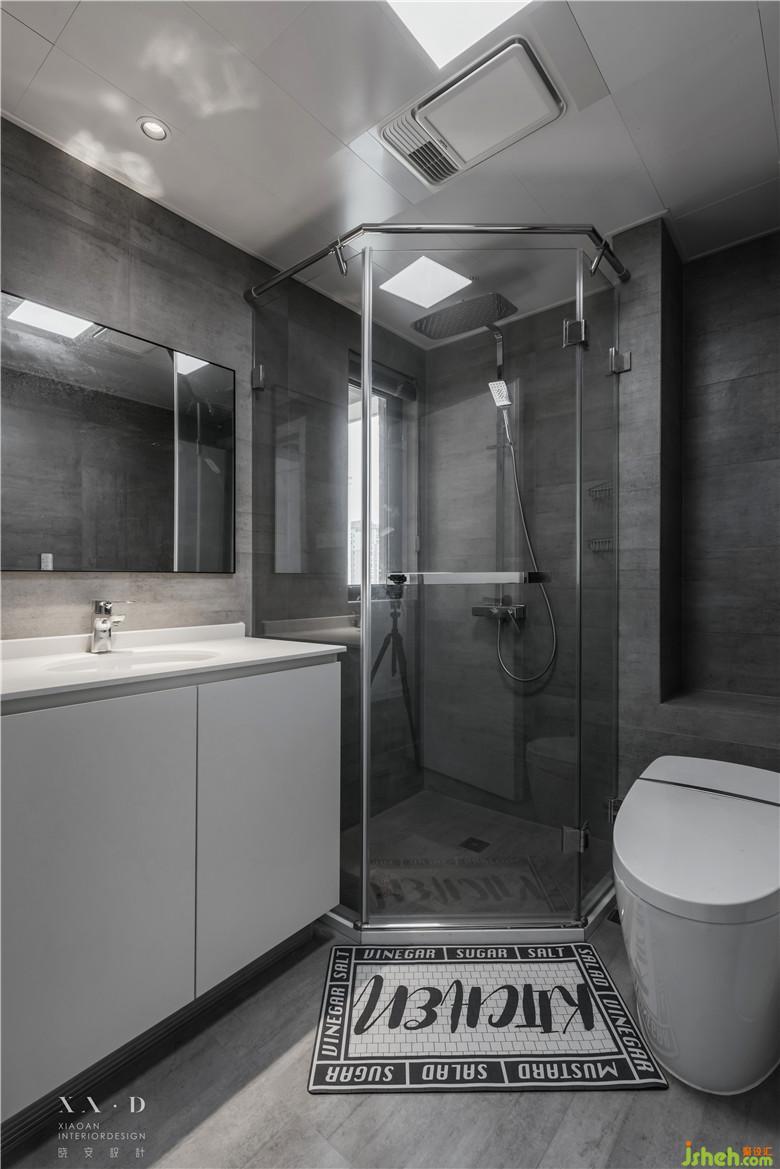 作為網(wǎng)紅款的小白磚與拱形的鏡子相映成趣,離地的臺盆柜,巧妙的避開了衛(wèi)生死角的產(chǎn)生。