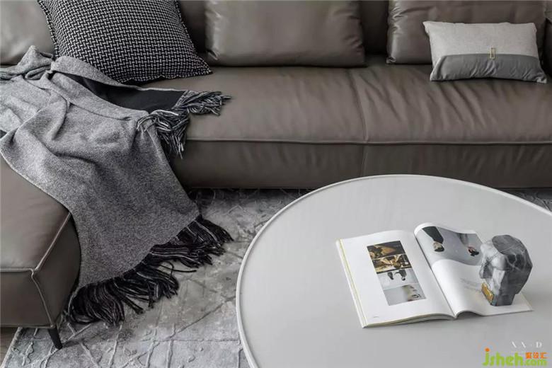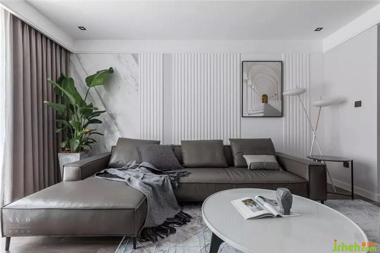 沙發(fā)背景是用石材和豎線條構(gòu)成,家里層高是常規(guī)商品房高度2.8,利用豎線條把層高視覺上下的去拉伸。