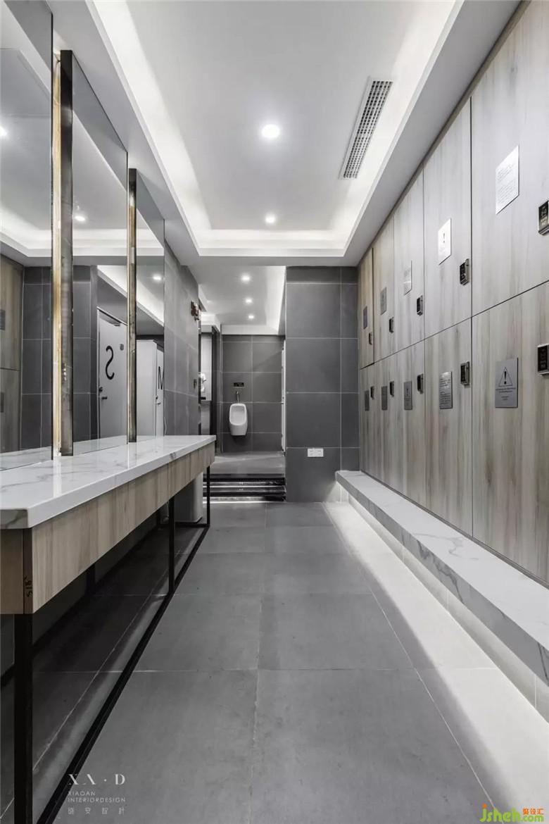 衛(wèi)生間是整個(gè)改造的重點(diǎn),它就像一個(gè)空間的心臟,沒(méi)有顯露在表面但格外重要,之前男淋浴間,要穿過(guò)一個(gè)倉(cāng)庫(kù)從一個(gè)很小的門(mén)進(jìn)去,并且只有淋浴跟雜亂的更衣柜,沒(méi)有衛(wèi)生間,在室外有一個(gè)公共衛(wèi)生間;女浴空間很大,但是依然不合理,設(shè)置了汗蒸房,龐大又浪費(fèi)空間。