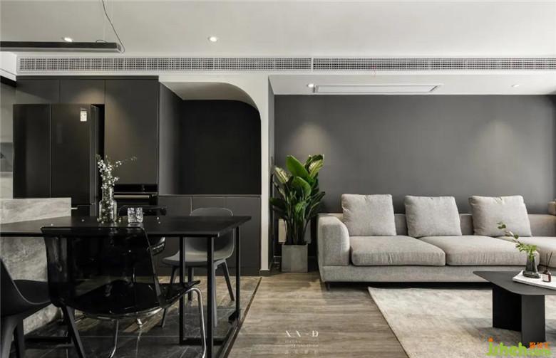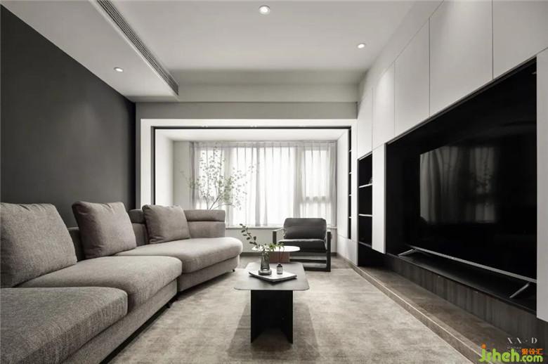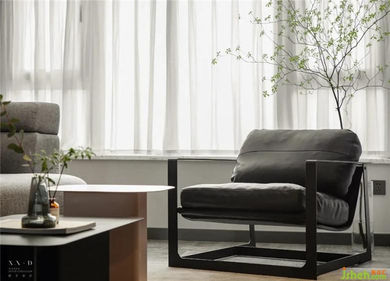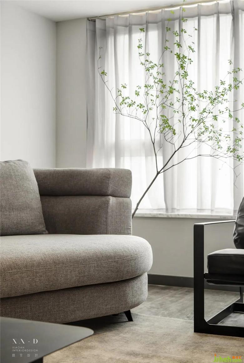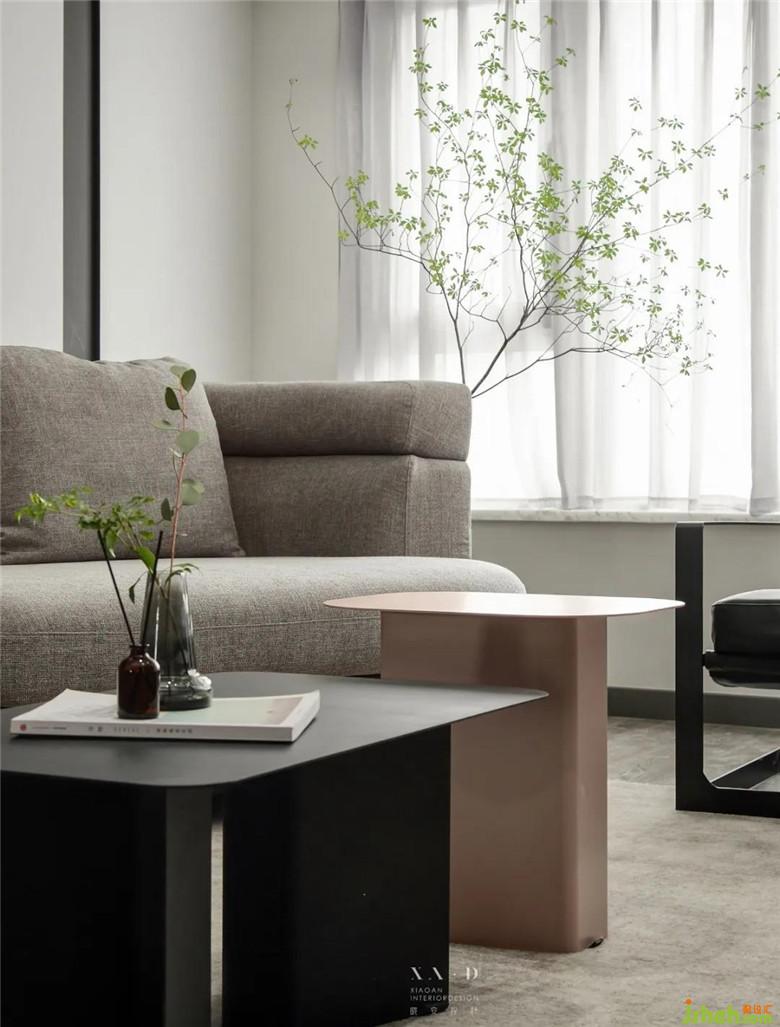 沙發(fā)與沙發(fā)椅,在空間中上演著“制衡”的哲學。樸素簡練的灰色是黑白之間的過渡,布沙發(fā)的敦實渾厚,又與相對纖薄嬌小的茶幾形成對應。